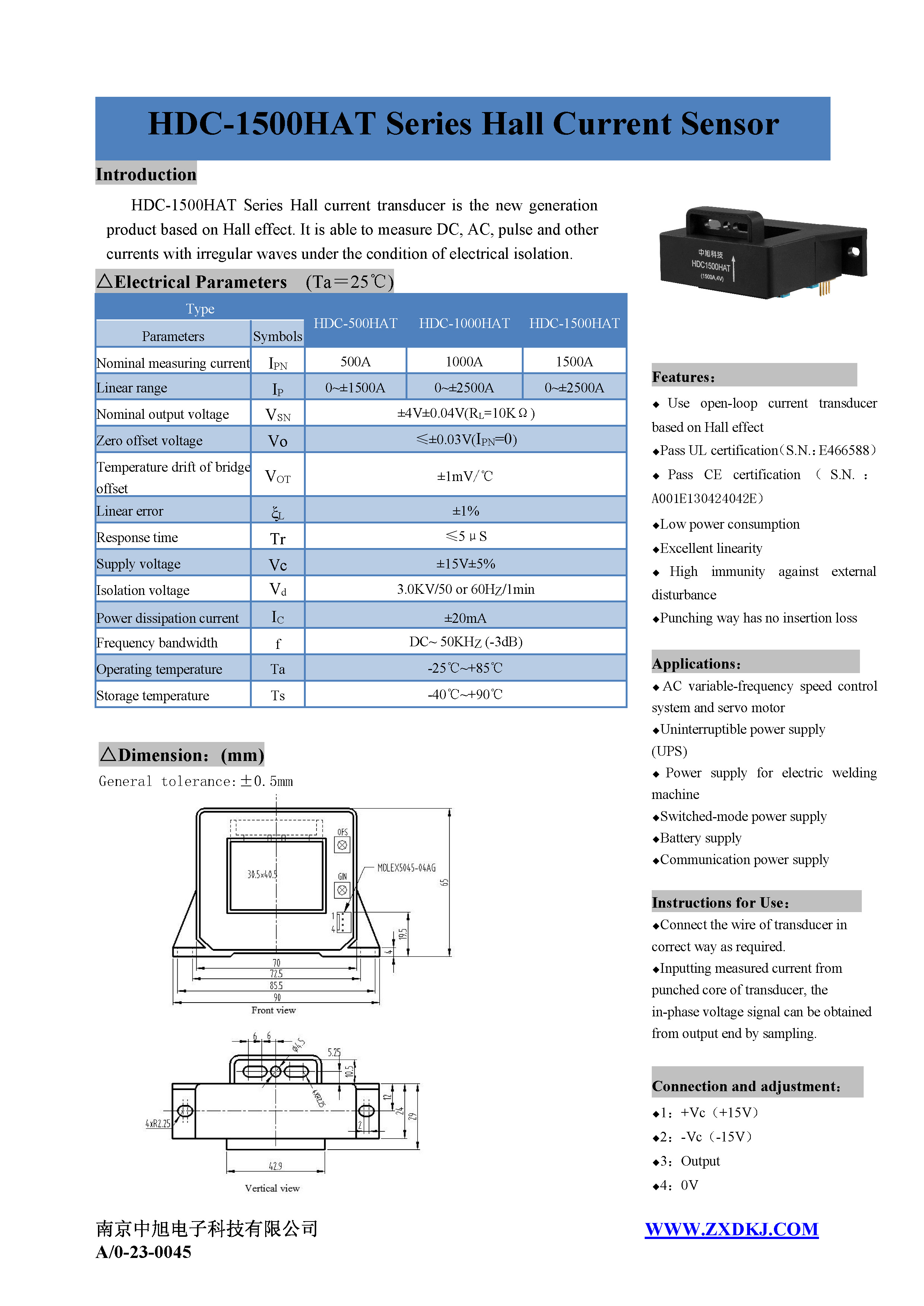 HDC-1500HAT系列霍爾電流傳感器是應(yīng)用霍爾效應(yīng)原理的新一代電流傳感器,能在電隔離條件下測(cè)量直流、交流、脈沖以及各種不規(guī)則波形的電流。